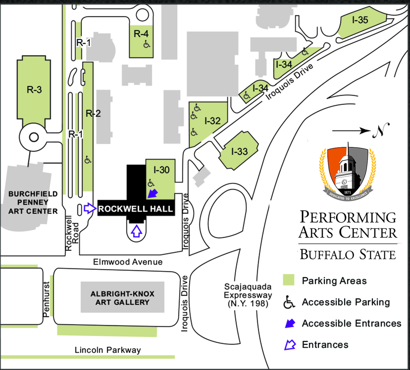 On street parking is available behind the AKG Art Museum. Weekday box office paid parking is available at the parking meters in Lot I-30 or at the Burchfield Penney pay Lot R-3 (please refer to the map).