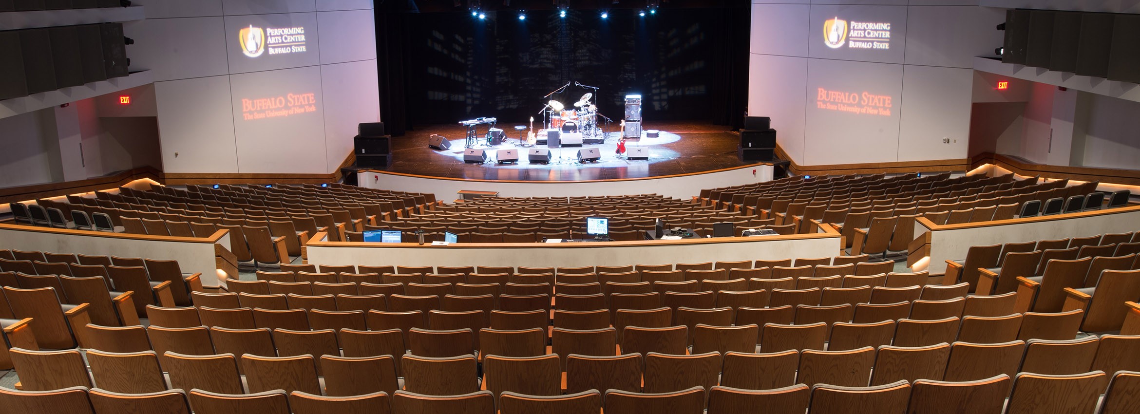 With state of the art sound and lighting, exceptional acoustics, and clear sight lines, the Buffalo State Performing Arts Center is an 856 seat multi purpose theater that provides patrons an intimate experience for concerts, comedy, dance recitals, lectures, films and more.